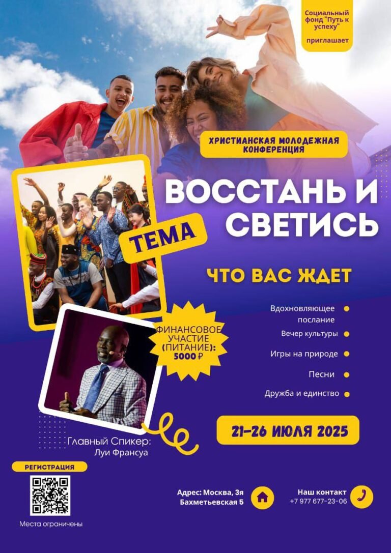 Христианская молодёжная конференция на тему «Восстань и светись» пройдёт с 21 по 26 июля. В программе: - Вдохновляющие …
